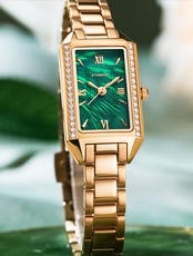 新款休闲时尚女表方表盘石英表镶钻陶瓷腕表绿表盘防水1446